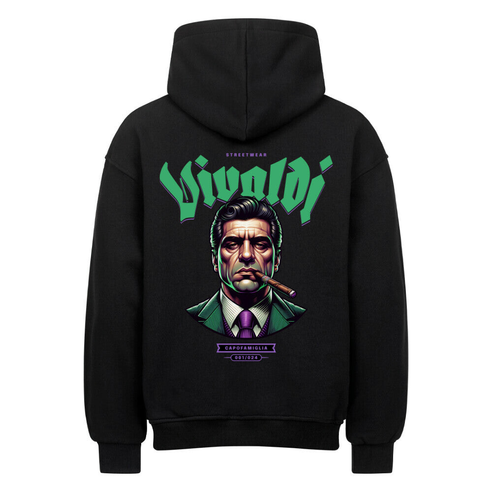 Der CAPOFAMIGLIA Oversized Hoodie vereint exklusives Design und herausragenden Komfort. Mit dem markanten Motiv des Oberhaupts der Vivaldi Famiglia, das mit Stil und Autorität regiert, setzt er ein starkes Statement. Jeder Hoodie dieser limitierten Auflage von nur 50 Stück trägt die Nummer 001/024 - Capofamiglia und macht dich zu einem exklusiven Teil der Vivaldi Famiglia.